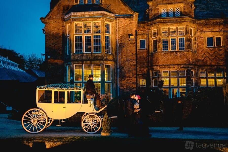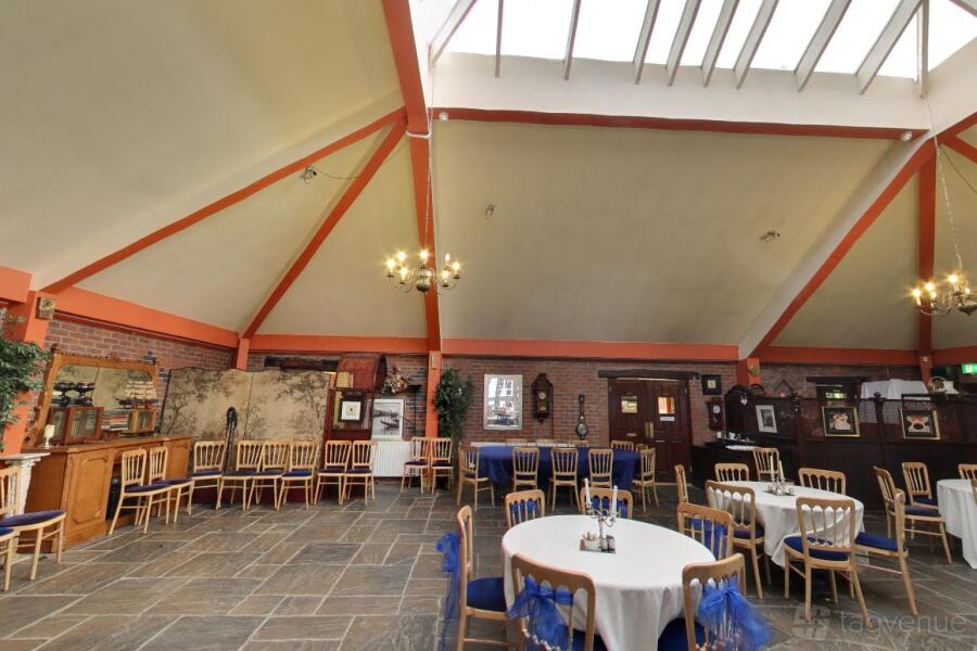 The gorgeous Ceremony Room boasts wood panelling on the walls, a beamed ceiling with chandeliers and a fireplace. The room is licensed for civil ceremonies with up to 100 guests. The venue provides ceremony chairs with covers and bows in the colour of your choice.