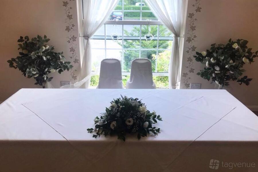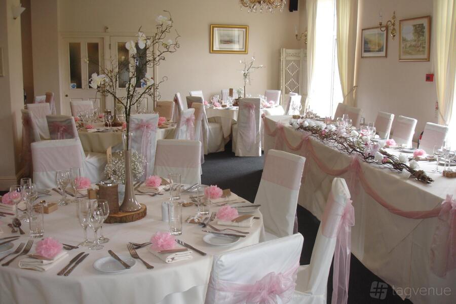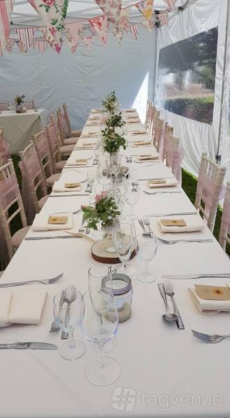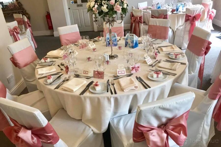 - Exclusive hire of the restaurant until 18.00 with white chairs and coloured sash & tables all set up