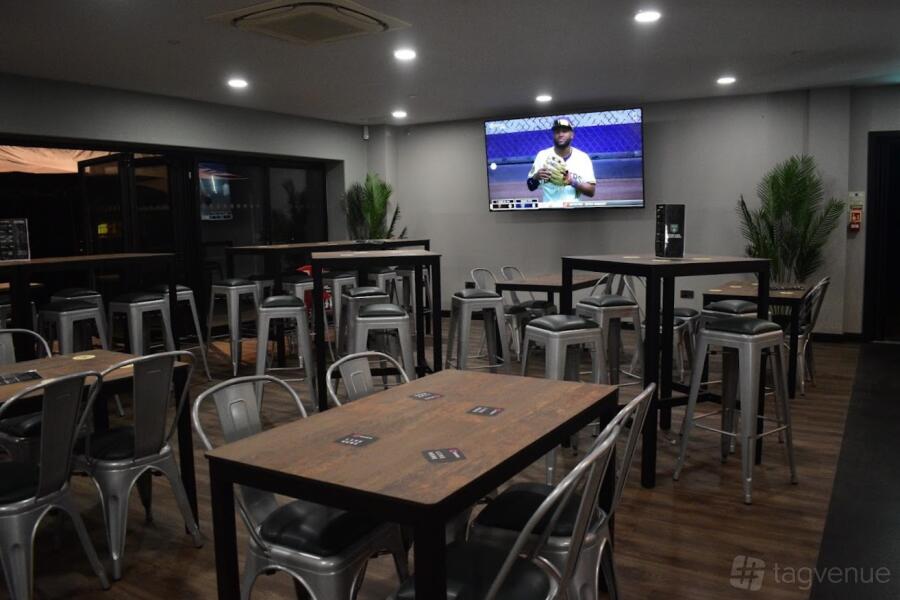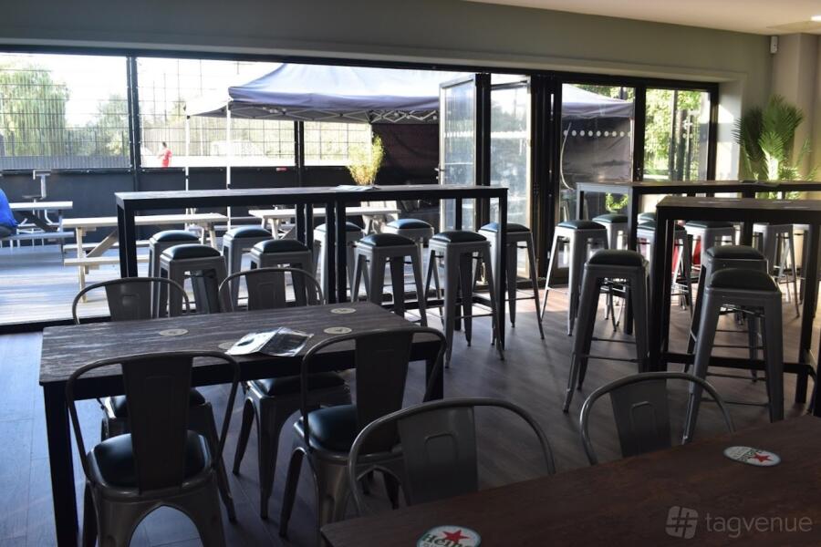 The patio at Powerleague Colchester offers a laid-back atmosphere, perfect for smaller gatherings of up to 40 guests. Wooden benches provide comfortable seating, creating a relaxed environment for socializing and enjoying the fresh air. Sun shades above the area offer shade and protection from the rain, ensuring your event can continue regardless of the weather.