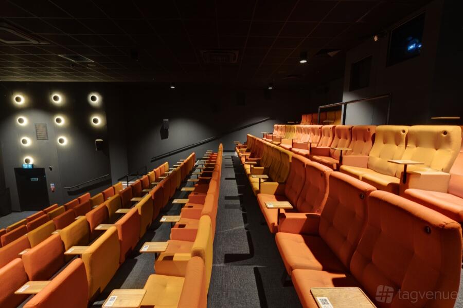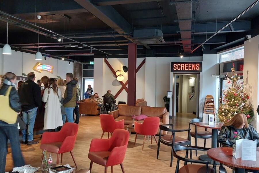 In addition to the screening rooms, the venue includes two café bars and a roof terrace, providing spaces for visitors to socialize before or after events. These areas complement the cinema experience by offering places to gather and relax.