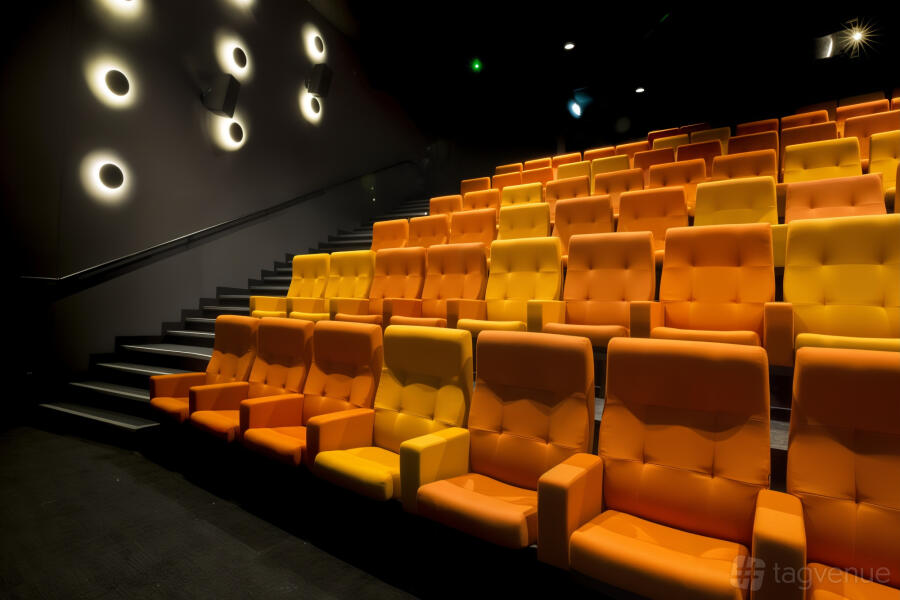 The seating is arranged to provide clear views of the screen, with audio delivered through the speakers.
