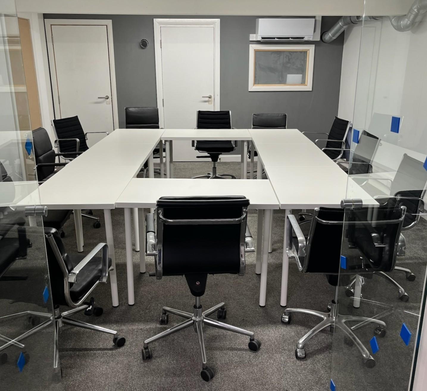 £10 per hour to have the quiet/meeting room which can hold max 3 desks, but more people seated around them.