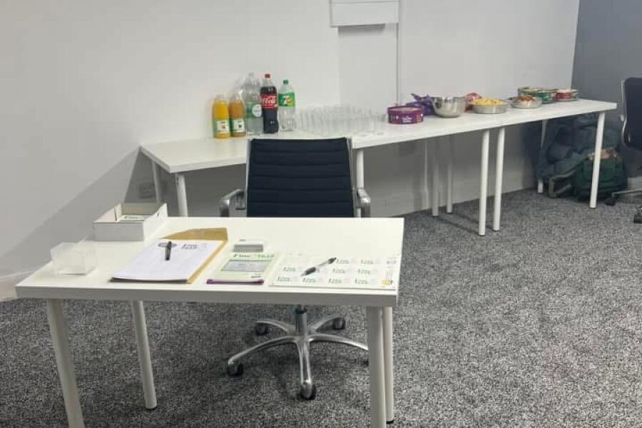 There’s a kitchenette with a fridge and a dishwasher and new toilets. There are plenty of seats and movable desks/tables, a storage room, a quiet room, and a new heating and Aircon system. We have superfast broadband.