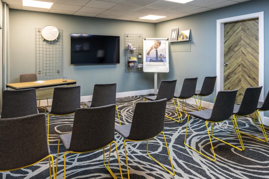 Measuring a comfortable 26 square meters, it's perfectly suited for intimate meetings and brainstorming sessions. Imagine your team gathered around, ideas flowing freely as sunlight streams through the windows. Our versatile space seamlessly adapts to your needs, with various configurations to choose from.
