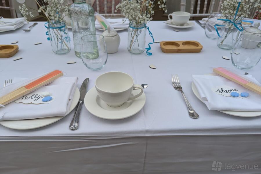 The afternoon tea cakes & cocktails can be coloured towards the gender of the baby