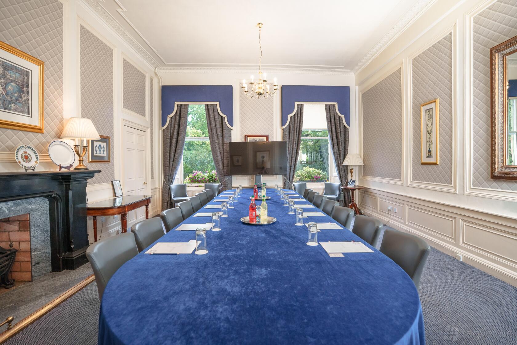 The Ellesmere Room, located on the ground floor with large windows that allow natural light to flood in, features a flexible boardroom table for up to 18 guests, or can be arranged theatre style for 30 or classroom style for 12.