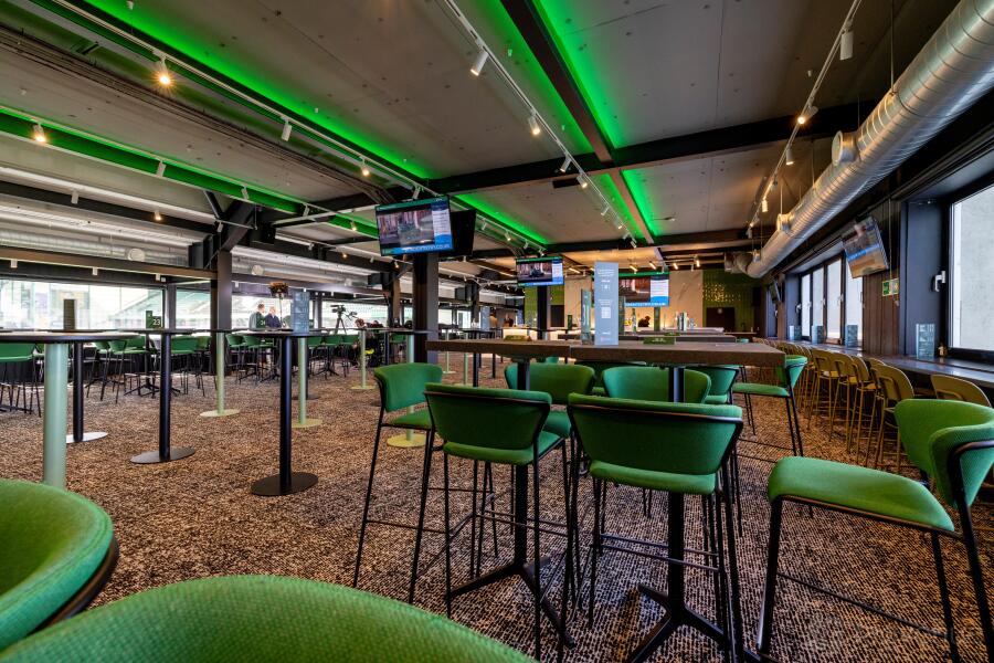 Nestled on the third level of the west stand, The Emerald Club is an exquisite space adorned with ten luxurious leather booths, providing a top-tier level of opulence. Versatile in its functionality, the area is well-suited for private dining experiences and distinctive off-site gatherings.