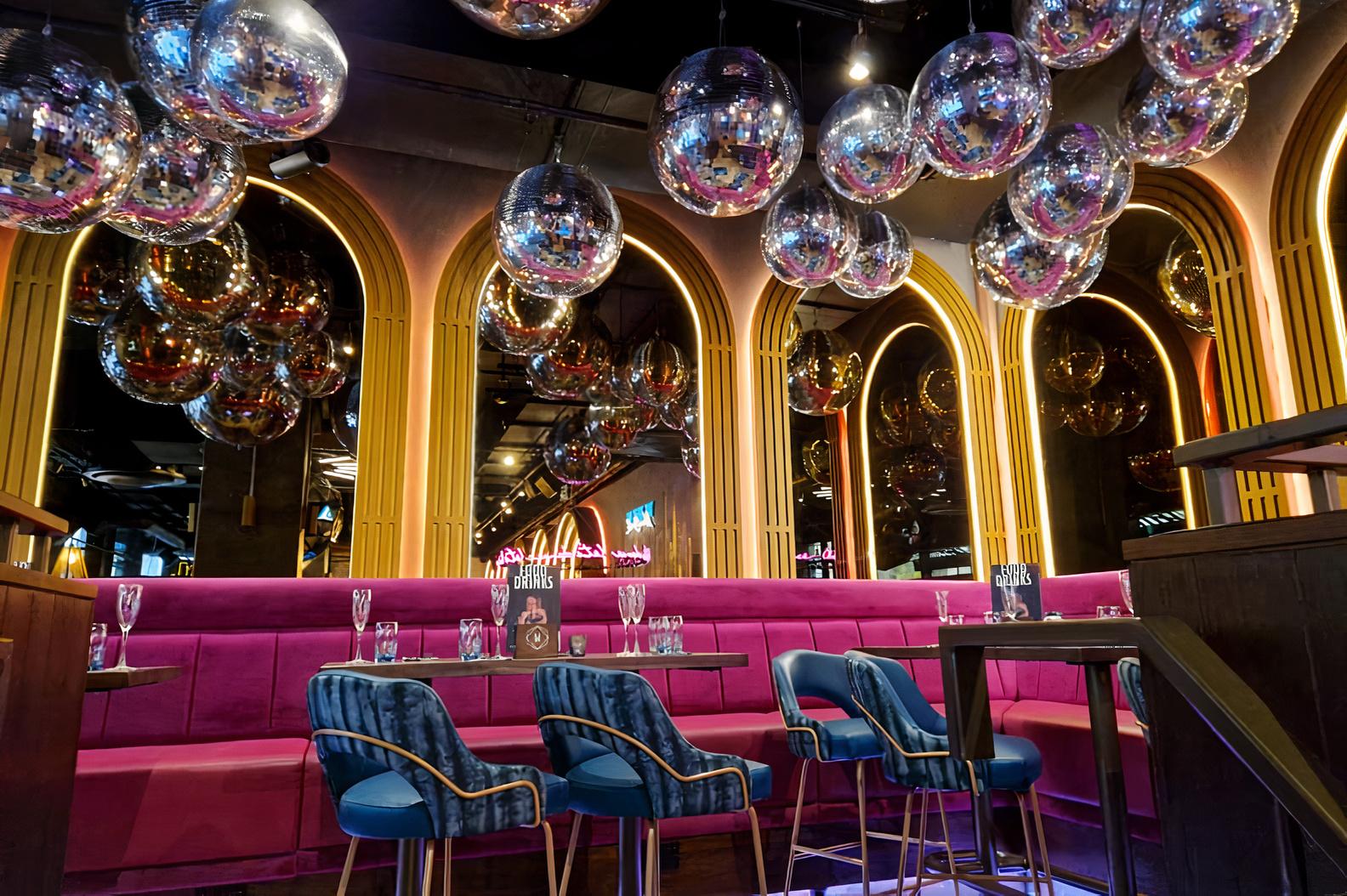 Located on the Main floor, our Restaurant area sits underneath a canopy of disco balls and neon lights. With space for 14 guests, or standing space for 20, the Restaurant is the perfect place to catch up in the comfort of your own company but with the exciting, bustling atmosphere of the bar floor.