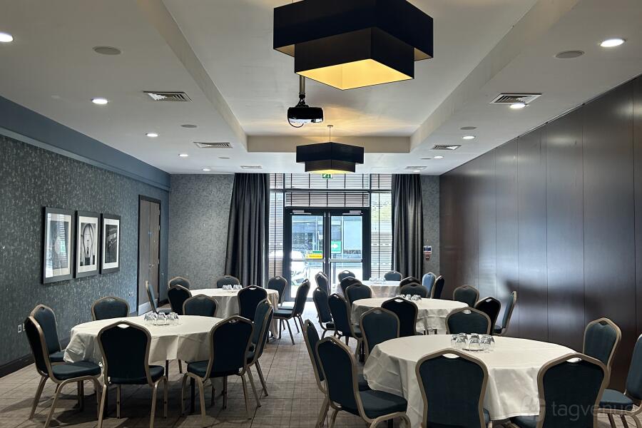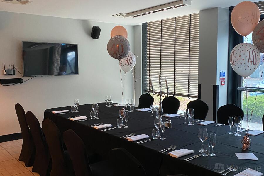 A large, neutral space with large windows for natural light, fully equipped with PA system, projector and screen built into the ceiling and Air Con facilities. Situated just outside the suite meets our private bar available to you and your party.