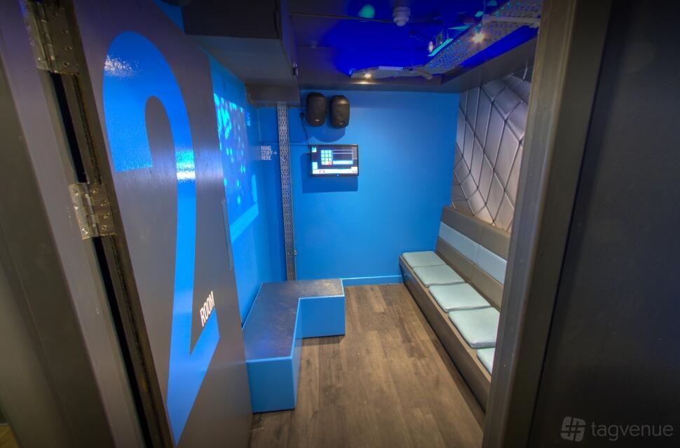 The mini room for 7 can be hired for small gatherings, whether it’s a stag party, birthday celebration, date night, or just a night out with friends or coworkers. Guests get two mics, access to a songbook, and a screen for lyrics.