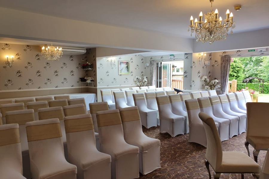 The Oak Room, licensed for civil ceremonies up to 60 guests with doors leading directly to the gardens allowing for natural daylight for an amazing cocktail hour after the ceremony.