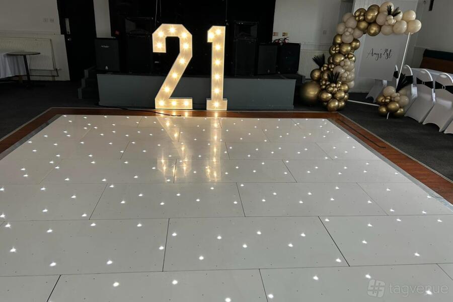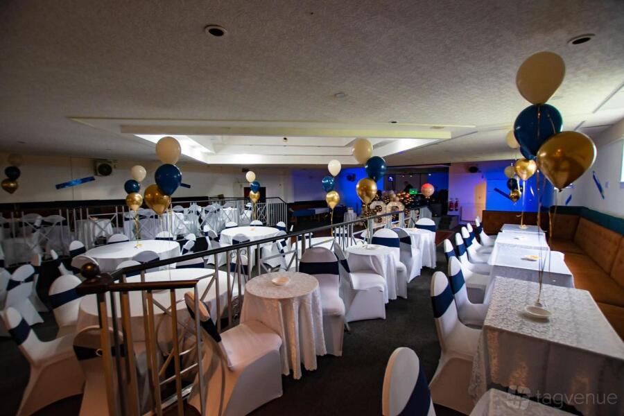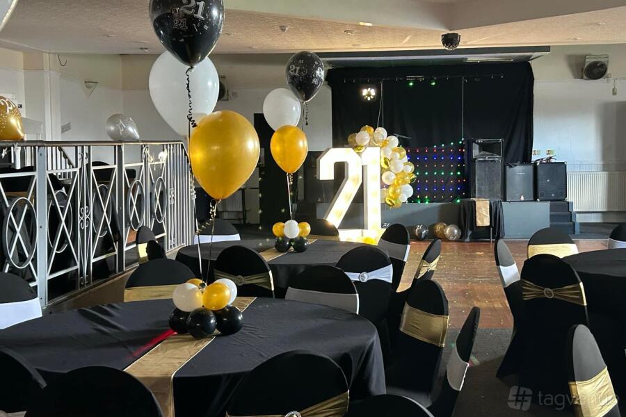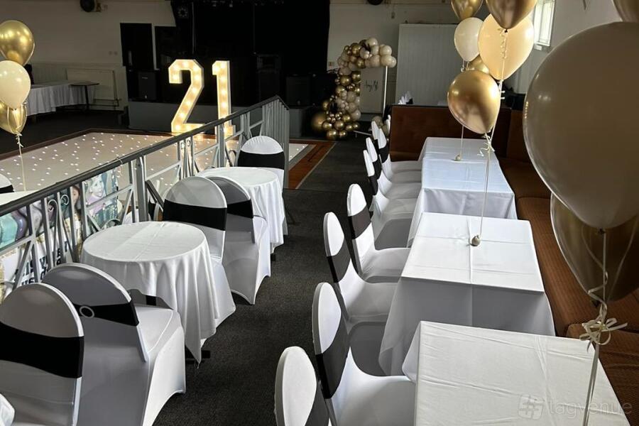 Hall 2 at Thorniewood Park has a capacity of 120 guests. This space is a fit for a more relaxed, sit-down event. The booking includes access to a bar, and the seating layout has both chairs and couches.