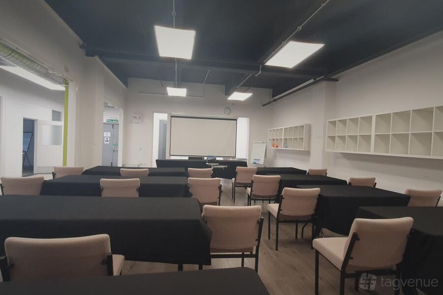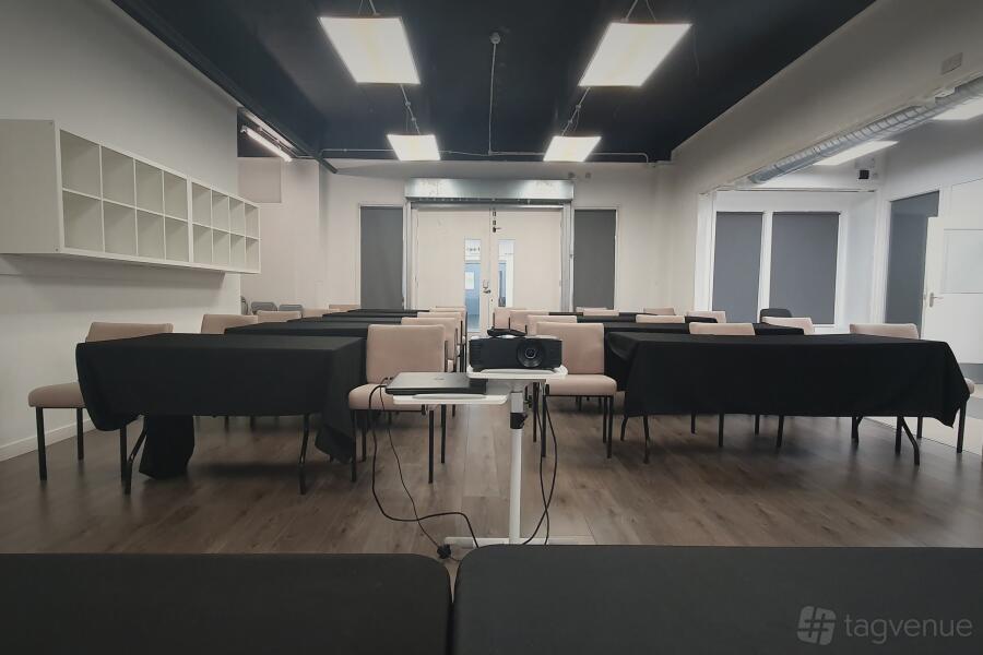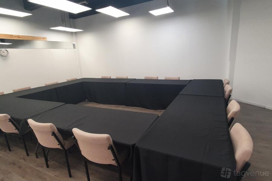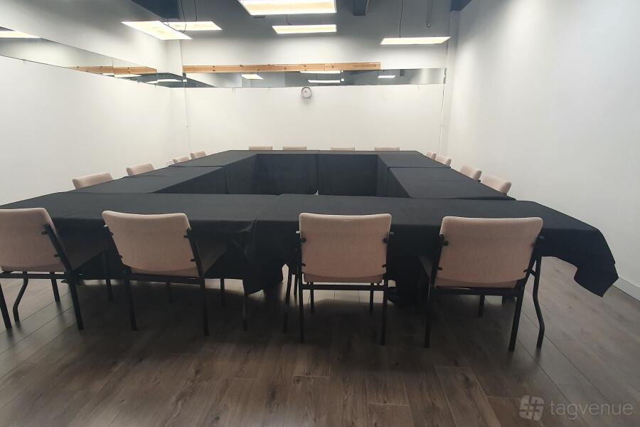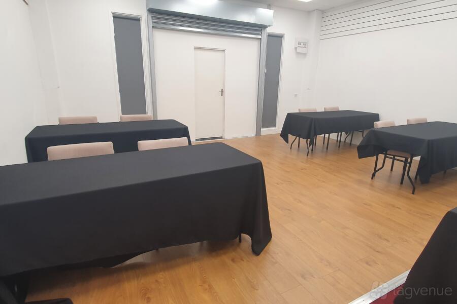 Tables and chairs are available and can be arranged in any setting you require. simply let us know what you need and we will arrange the room accordingly. a large white wall is available for projection purposes if needed.