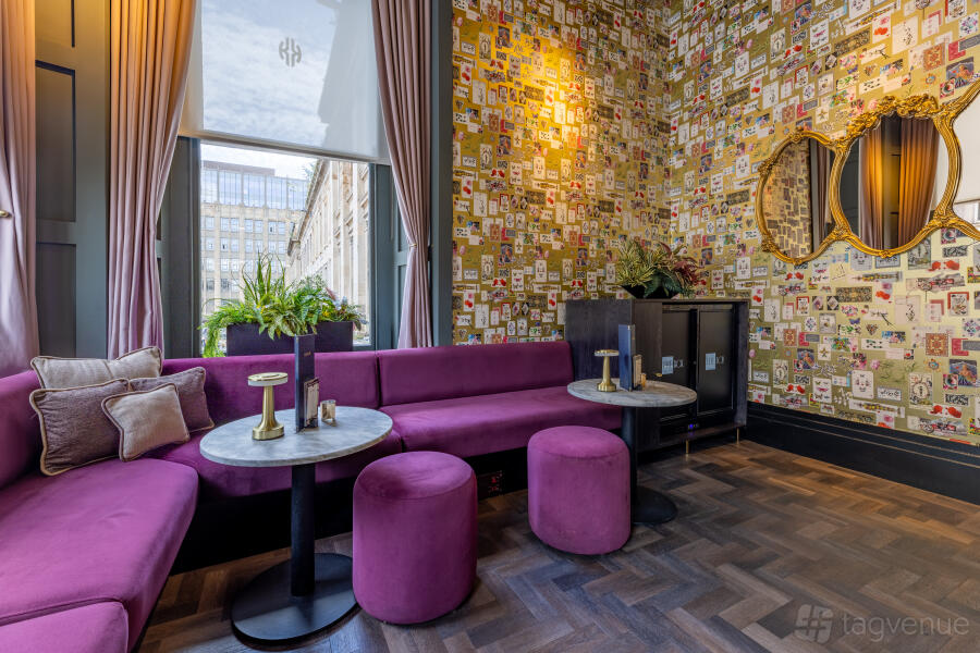 With the DJ booth and staging area central to the seating layout the space offers an ideal set up for events with performers or guest conferences and comes complete with your own private terrace.