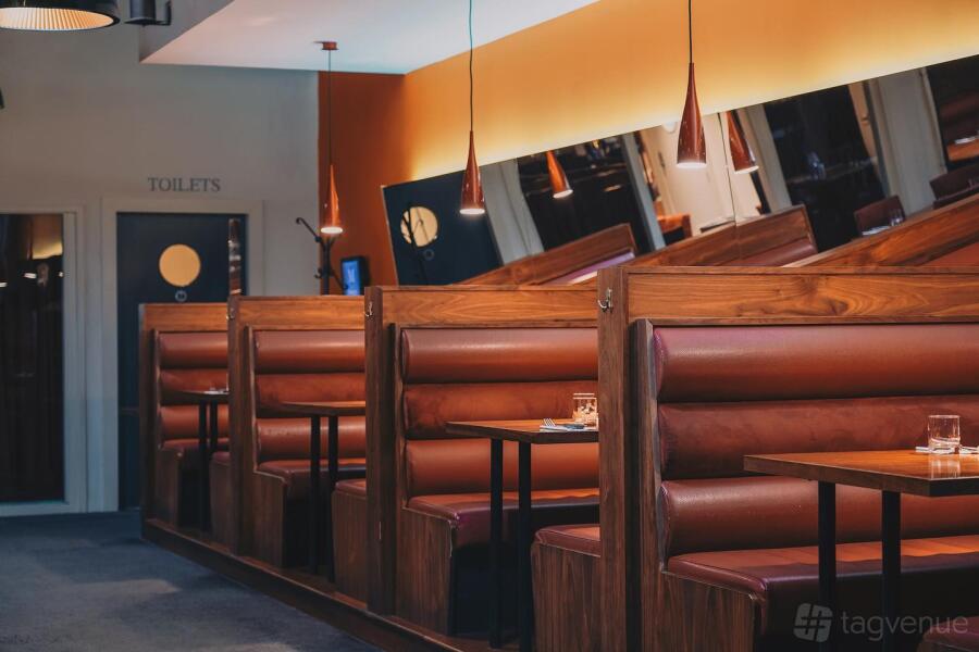 The private dining room at The McMillan House, in Strathbungo, Glasgow, is a cozy and exclusive space, perfect for intimate gatherings. With room for up to 26 guests, it’s ideal for private dinners, corporate meetings, or celebrating milestones with those closest to you. The space boasts elegant decor, featuring rich red seating, a polished wooden table, and modern pendant lighting. A mounted TV adds versatility, seamlessly accommodating both formal and casual occasions.