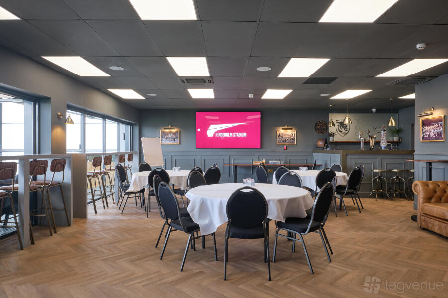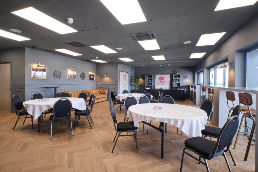 The Captains Lounge is located on the third floor of the stadium with a panoramic view of the Kingsholm pitch. One of Gloucester's largest and best-equipped conference facilities available. High powered ceiling-mounted projector, a large screen, and 5 additional support monitors will only enhance your presentation. Add in the view from the balcony, and set our Captain's Lounge aside from the competition. Full IT support and event assistance are available during your day.