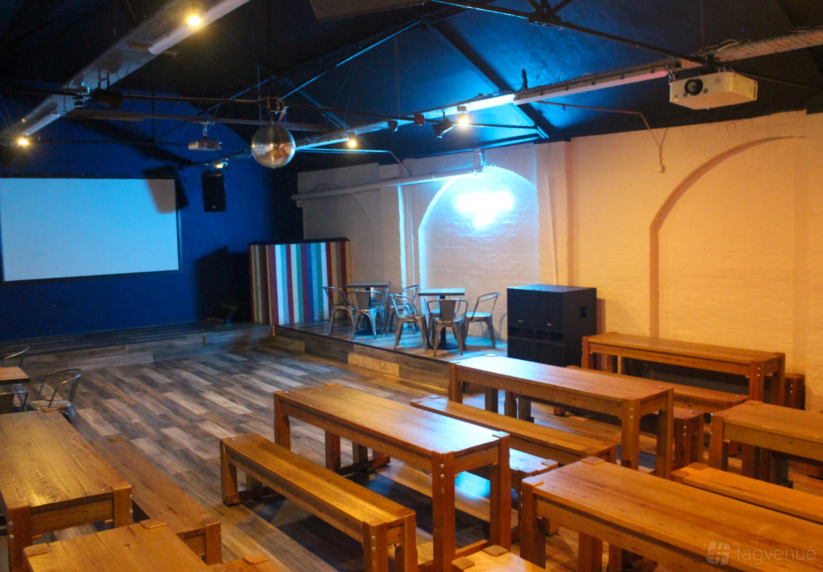 Available for full venue or room-only hire, the space accommodates up to 200 guests standing or 142 seated. Equipped with a professional PA system, flatscreen displays, Wi-Fi, and atmospheric lighting, it offers a stylish and flexible setting for any occasion.
