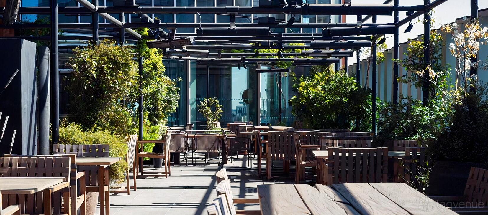 The terrace is bright and open, with room for around fifty guests. It’s great for summer dining or private events. Guests can enjoy the same food and service as inside, but in a more casual, open-air setting.