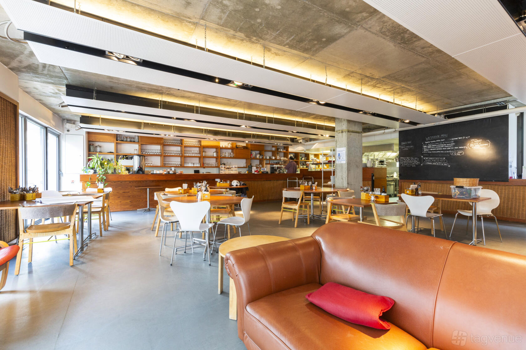 Inside, you’ll find plastered walls, a tiled bar, and a long wooden table that runs down the middle. There’s also a small stage and a DJ booth with a flexible layout.