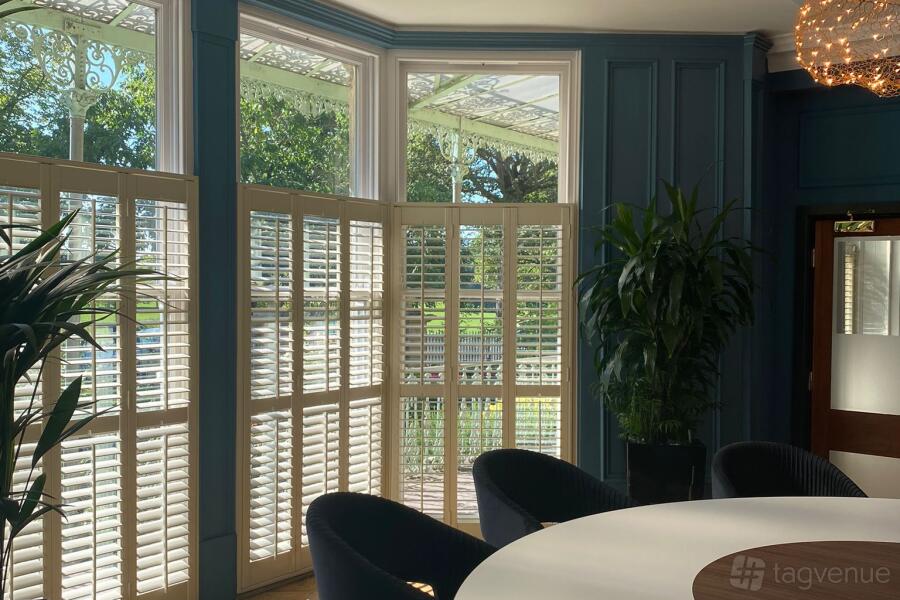 If you're looking for modern elegance mixed with Victoria architecture, this is the meeting room for you. The Harlow Suite's soft pink and deep green aesthetic will set the tone for your important meeting, co-working day, or client-pitch.