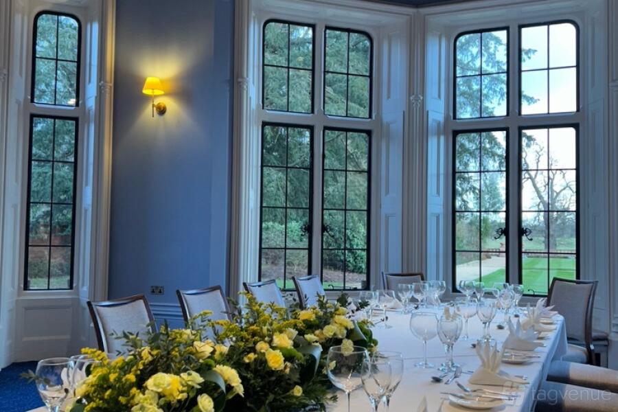 The Library is the largest of our function spaces here at The Elvetham. Walls adorned with original antique bookcases, large windows facing our beautiful grounds, and an ornate fireplace all provide a beautiful sense of grandeur to any event. We have a second kitchen in our venue to cater specifically for events in The Library, so it's perfect for any type of celebration.