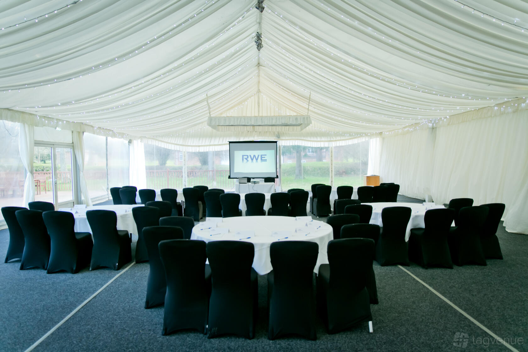 The Garden Suite Marquee at Warbrook House is a stunning, spacious venue with a capacity of up to 550 guests, perfect for large conferences, weddings, or celebrations.