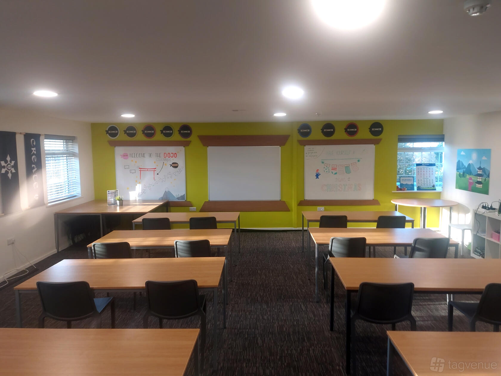 The Dojo room has a capcity of 60 people, with a classroom layout. There is a whiteboard available, as well as chairs and desks. This space is great for organizing events such as kids' classes, workshops and courses.