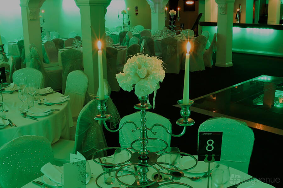 The venue also features colour-changing mood lighting, net curtains, a dance floor, plasma screens for slideshows, a bridal room, limited parking, and facilities for civil ceremonies.