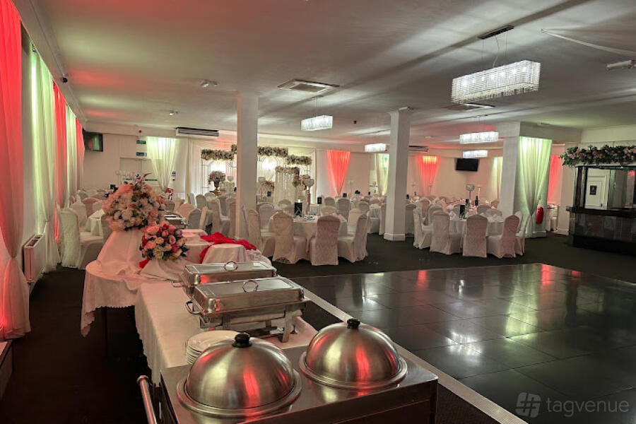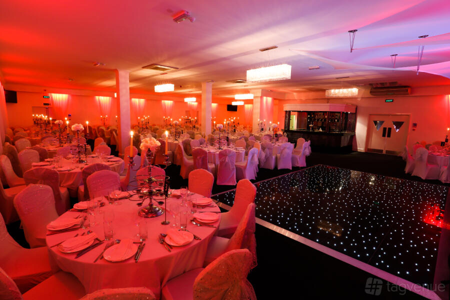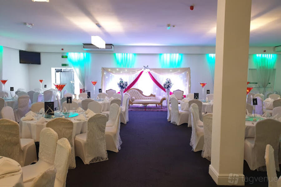 The venue also features colour-changing mood lighting, net curtains, a dance floor, plasma screens for slideshows, a bridal room, limited parking, and facilities for civil ceremonies.