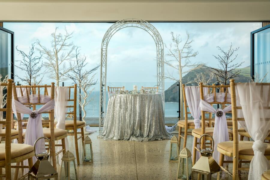 Fully licensed for wedding ceremonies, the venue can offer spaces inside as well as in the scenic cliff top gazebo with our Sky Walk platform. Imagine your guests facing towards the sea, watching as you take your vows in this magnificent scenery.