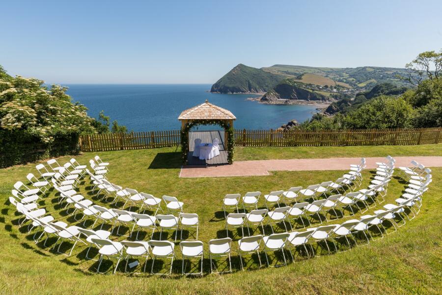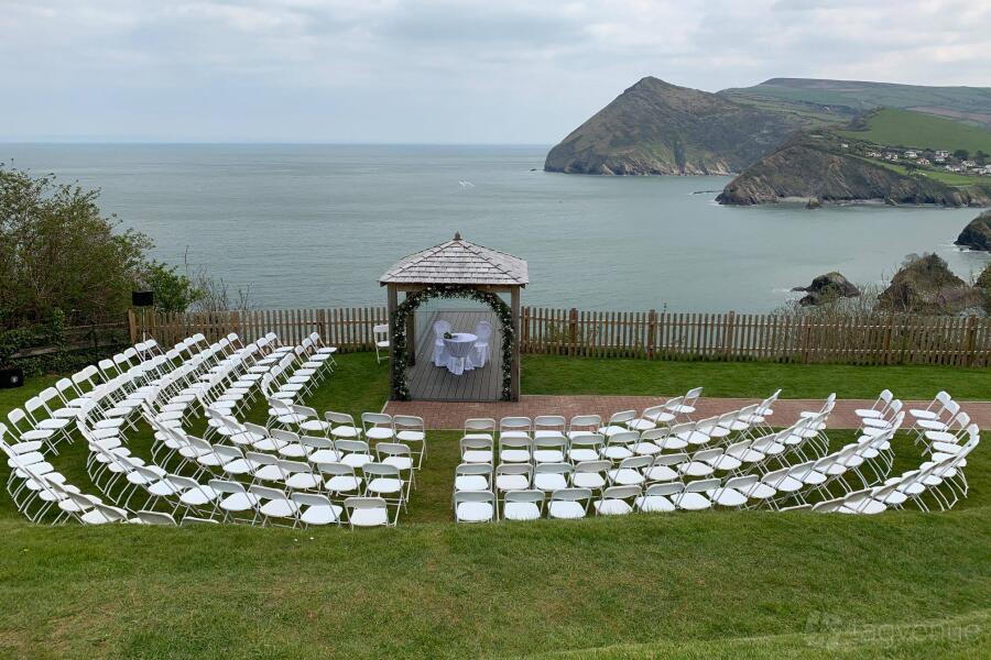 Fully licensed for wedding ceremonies, the venue can offer spaces inside as well as in the scenic cliff top gazebo with our Sky Walk platform. Imagine your guests facing towards the sea, watching as you take your vows in this magnificent scenery.
