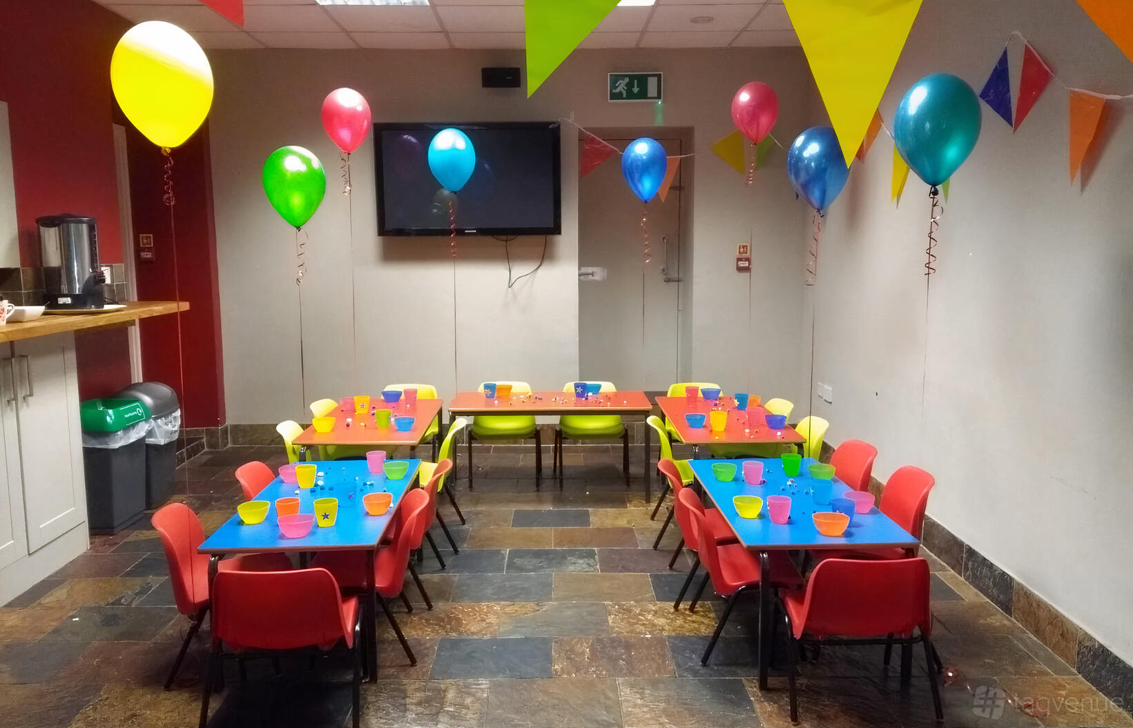 Our first floor has a large soft play area for children, ideal for parties. There’s a kitchenette with a space for coffee and tea, couches, and seating space. Suitable for up to 35 children. Sound system available.