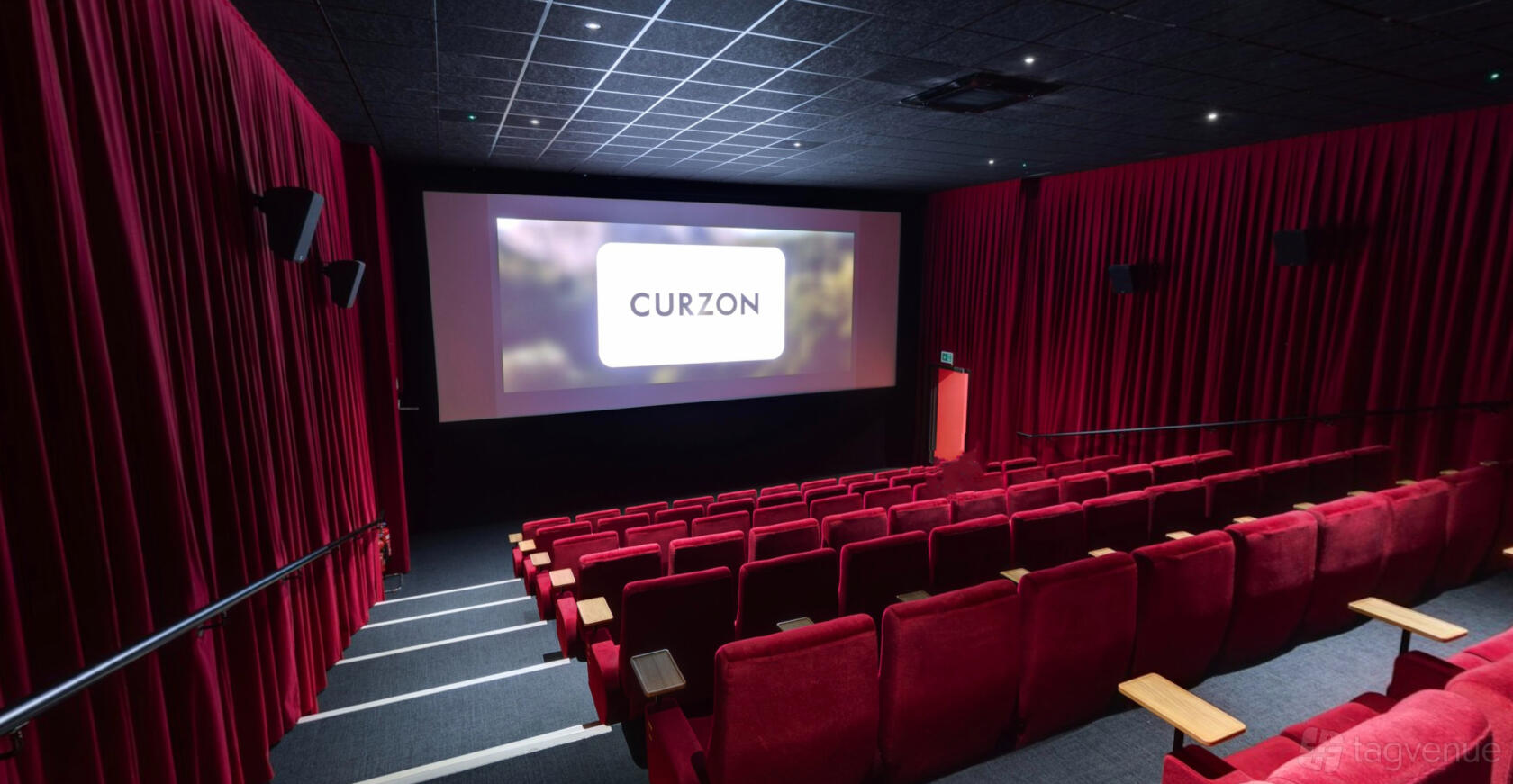 Screen 2 at Curzon Knutsford is a sleek and comfortable cinema space. It features deep red velvet seats with individual wooden trays and a clear view of the screen from every row. Dark curtains line the walls, creating a rich, in depth atmosphere. The room has a gently raked layout, soft lighting, and a quiet, focused vibe. Ideal for private screenings, events, or presentations.
