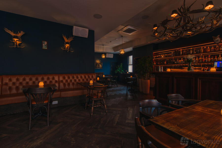 Tan leather booths run down the side of the room and with a statement antler chandelier above its private bar, it provides you with a luxury experience that your guests won’t forget. With room for up to 120 guests, this space is perfect for a roaring party of any occasion. Popular for birthday celebrations, wedding receptions/engagements and Christmas parties.
