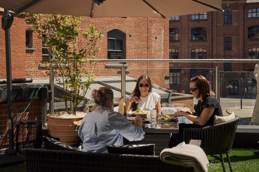 In the summer months, come and enjoy a coffee, cocktail or even Bottomless Brunch on our first-floor terrace. Find us opposite the Q park Criterion place and just down from Trinity shopping center car park.