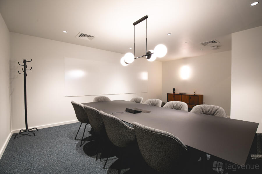 The Workshop is a 10-person meeting room complete with a large round table, a 90" wall-mounted screen, video conferencing facilities, HDMI connectivity, air conditioning & heating, WIFI, stationary and breakout space.