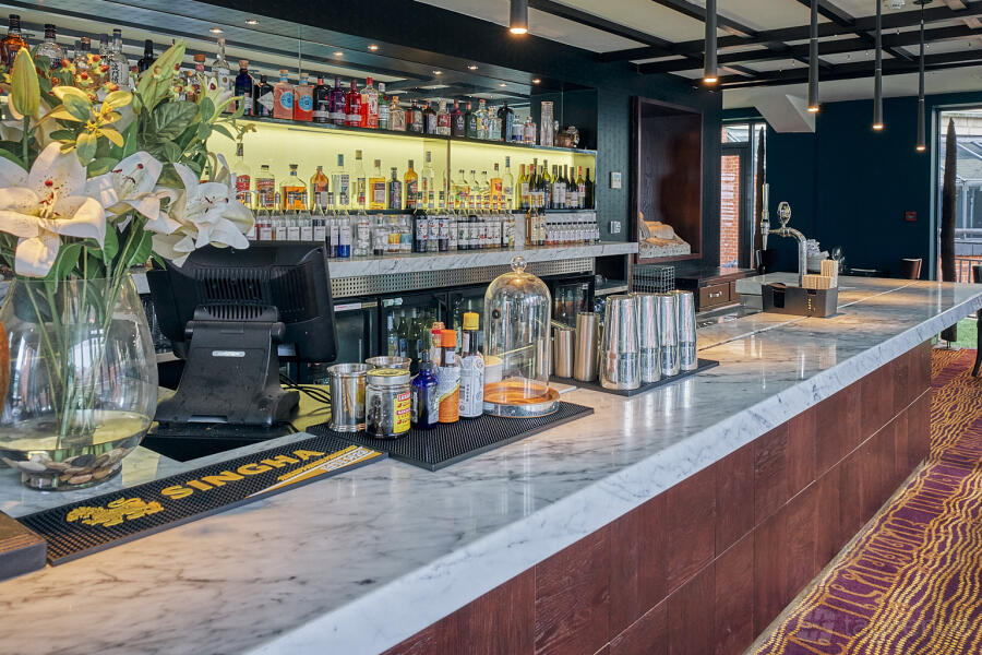 The Summer Terrace is an outdoor space connected to the Feature Bar in central Leeds, offering views of downtown with an urban yet tranquil vibe.