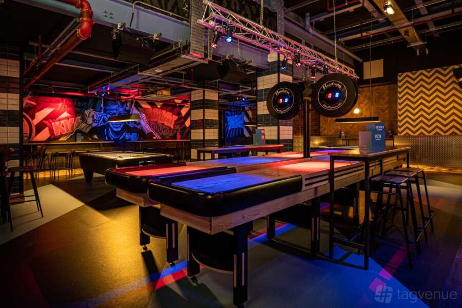 This venue also features an Ice-Free Curling area, combining the thrill of curling with a modern twist. Set a vibrant, neon-lit atmosphere, the space offers smooth lanes, interactive gameplay, and a fun, social environment ideal for group activities and friendly competition.