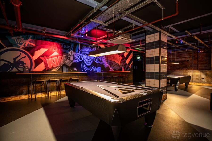 Step into our Gaming Hall and prepare to be amazed. The vibrant atmosphere is enhanced by stunning murals and graffiti, all illuminated by a mesmerizing display of colourful lights. This unique space is equipped with 3 pool tables and 2 shuffleboard tables, ensuring there's always something fun to do. Whether you're planning a special event or simply looking for a great night out, our Gaming Hall is the perfect choice.