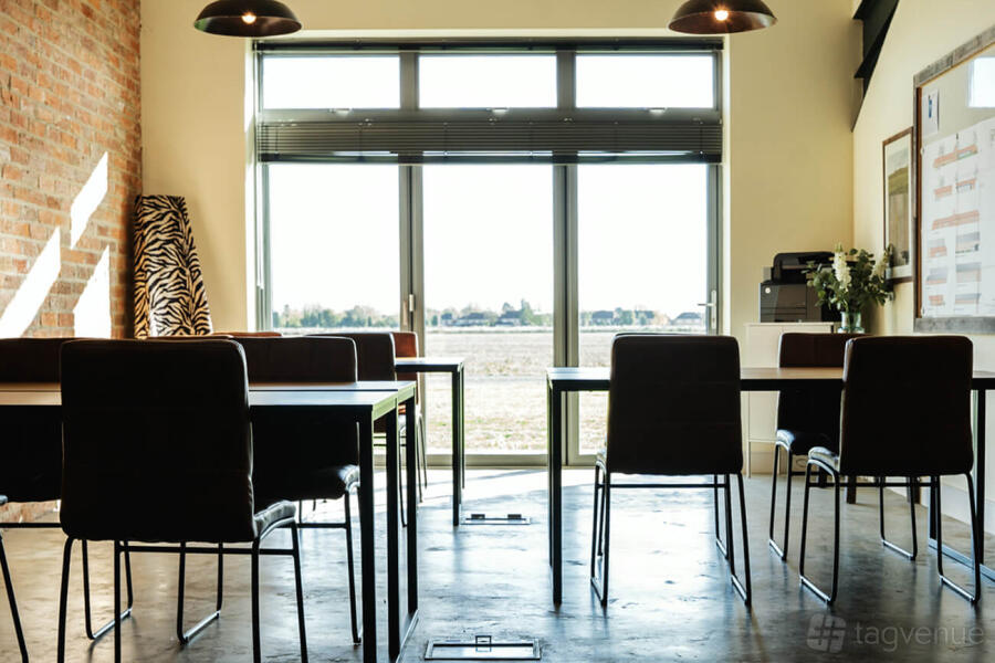 Thetford Farm Estate offers 10,500m² of event space on 500 acres of South Lincolnshire farmland. Available spaces include the Conference Barn, a modern Corporate Suite/Showroom, three breakout rooms, and two courtyards - one enclosed. We invite you for off-site meetings, team-building, and retreats, providing inspiring countryside views.