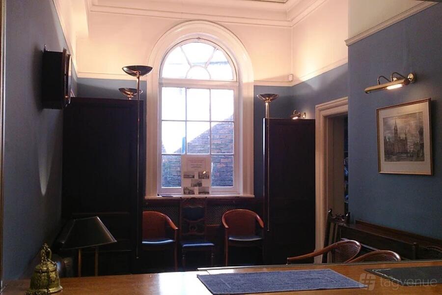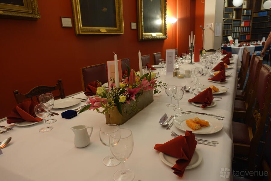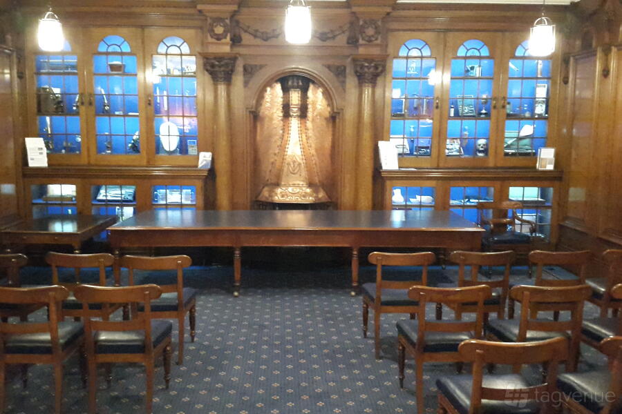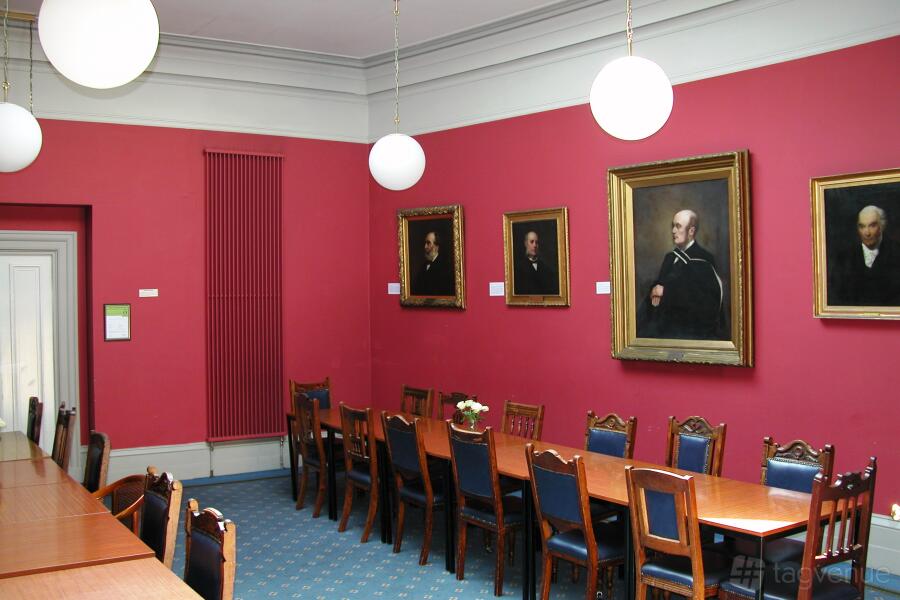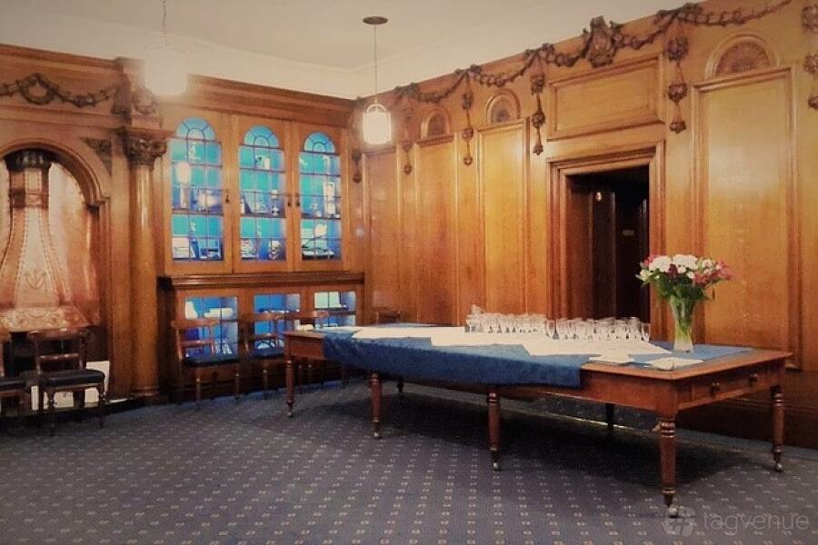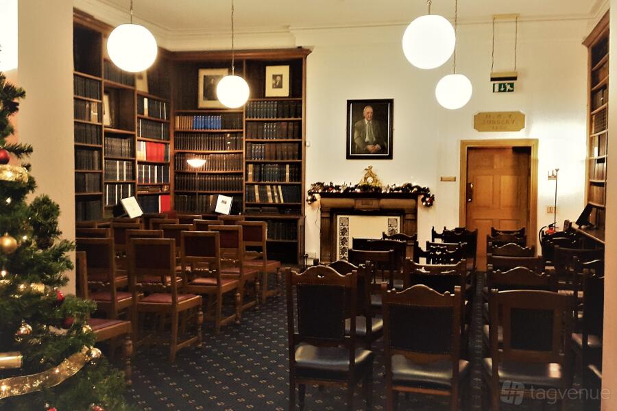The Lecture Theatre is a gorgeous Victorian D-shaped (wedge-shaped) theatre with two seating tiers. The Theatre seats 120 persons in upholstered fixed bench seating.