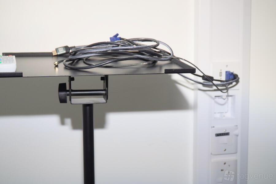 Includes sound system with up to 6 microphones and projector for presentations. Presentations are run from the media platform at the back balcony so a clicker will be provided.