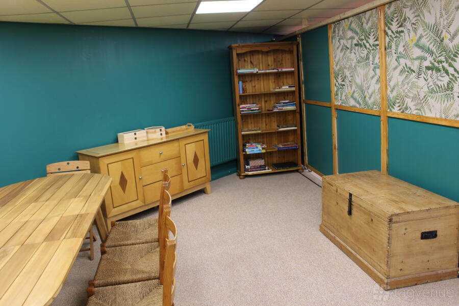 During a birthday party it is used as a lounge for parents and tables are set up with party food.