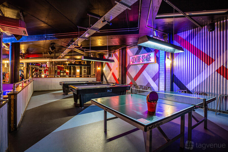 Step into our vibrant and lively space, where you'll be greeted by a captivating atmosphere, colourful lights, and an industrial design that oozes charm. Get ready to unleash your competitive side as you dive into our wide range of games, including the unique Crazy Pool, beer pong, shuffleboard, and many more. And when you need a break from all the excitement, head up to our rooftop bar and treat yourself to a refreshing cocktail or two.