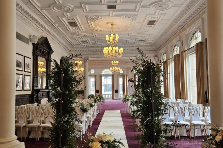 The Canon suite is ideal for modest-sized weddings, beautifully restored with high ceilings, it’ll add old style grandeur to your special day. This venue has a timeless and elegant design. The room features high ceilings adorned with gorgeous white decorative moldings, and crystal chandeliers add a touch of luxury.