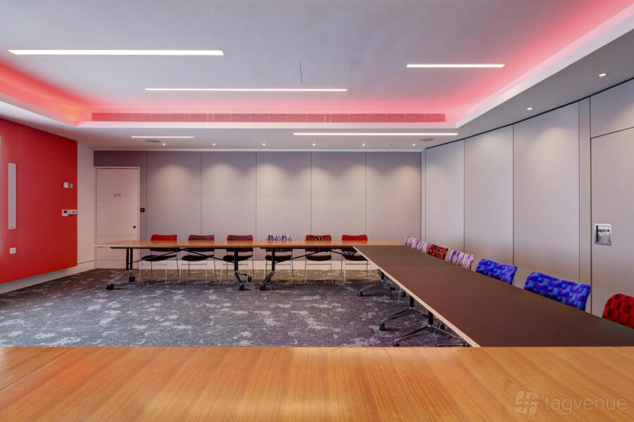 The adjoining Cubic Foyer provides the perfect space for guest registration, lunch and networking drinks, housing a large screen for branding, promotional videos or display of itinerary.