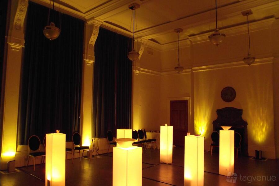 Situated on the 1st floor the Main Hall is our largest and most impressive space, and can accommodate 200 people standing or 150 theatre style. This lavish hall benefits from concert acoustics, a sprung wooden floor, full audio visual set up and blackout facilities. It has raked seating, induction loop and is the ideal space for large events and rehearsals.