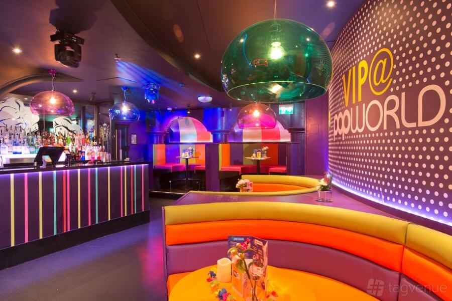 Come to Popworld and enjoy the soundtrack of the 80s, 90's, 0's and now as well as great prices on giant sharing drinks for a top night out with friends. You can have the big blowout you always dreamed off in this funky wonderland of vibrant colours, flashing dance floor mayhem and cheerful drinks. You can pre-book for one of the best nights out in London and you'll get a choice of some great party booth package options. Let us make your celebration and party our celebration.