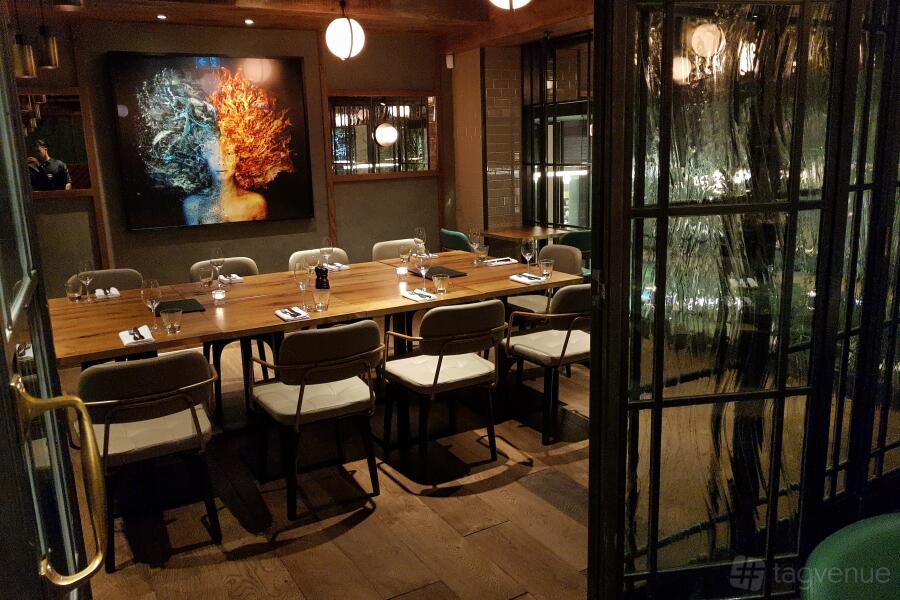 The restaurant is set over two floors with the main dining room and bar on the ground floor and a private dining room and semi-private Mezzanine on the first floor. The private dining room, mezzanine, and restaurant can be exclusively hired for personal celebrations, weddings, conference dinners, and corporate events.