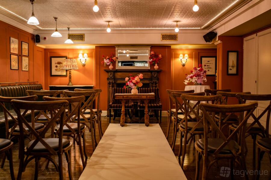 The room is situated on the first floor of the restaurant and benefits from natural day light from three large sash windows.